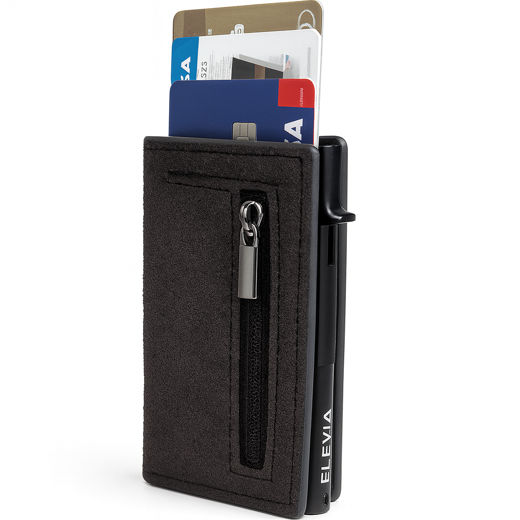 Da. Portofelele Elevia sunt realizate din materiale premium (carbon autentic sau Alcantara), rezistente la uzură zilnică și testate pentru durabilitate pe termen lung.