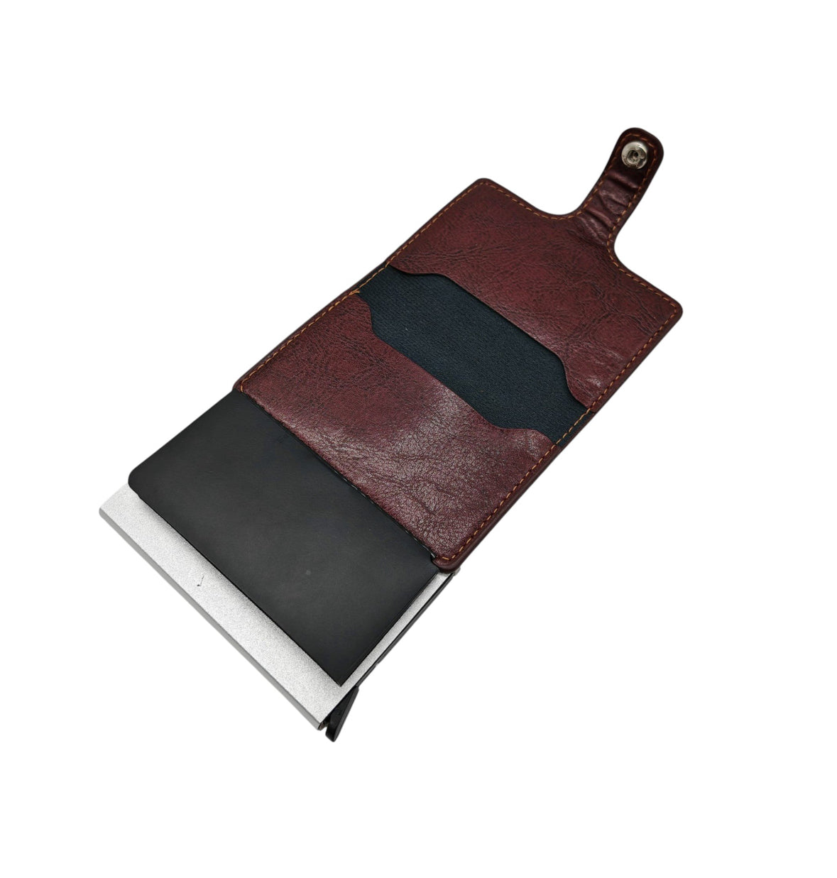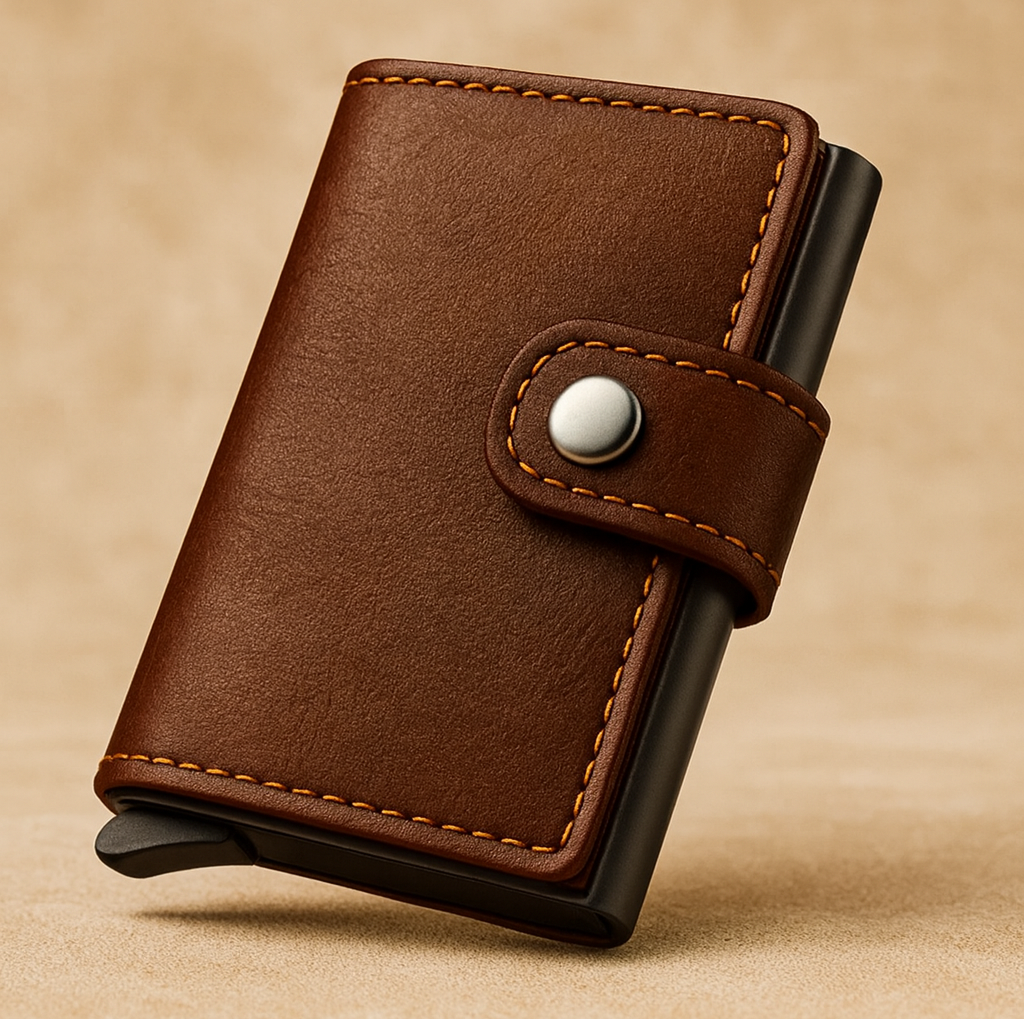 Compartimentul metalic blochează semnalele RFID, protejând cardurile tale de scanări nedorite. Materialele premium și cusăturile întărite asigură o durabilitate de lungă durată, menținând aspectul impecabil în timp.